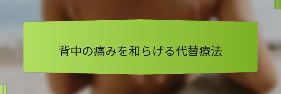 背中の痛みを和らげるための代替療法は、不快感を管理し、可動性を向上させるためのホリスティックなアプローチを提供します。これらの方法は、薬物療法や手術などの従来の治療法とは異なり、個々の状況や使用される特定の療法に基づいて効果が異なる場合があります。これらの選択肢を検討する際には、安全性や潜在的なリスクを考慮し、最適な結果を得るために十分な情報に基づいた同意と慎重な評価を行うことが重要です。 背中の痛みを和らげるための最も効果的な代替療法は何ですか? 背中の痛みを和らげるための代替療法には、不快感を軽減し、可動性を改善することを目的としたさまざまな方法が含まれます。これらの療法は、ホリスティックなアプローチに焦点を当て、痛み管理の身体的および精神的側面の両方に対処することが多いです。 鍼治療:メカニズムと利点 鍼治療は、特定の体のポイントに細い針を挿入してエネルギーの流れを刺激し、治癒を促進します。この実践は、炎症を軽減し、血行を改善するのに役立ち、多くの背中の痛みに苦しむ人々に痛みの緩和をもたらします。 研究によると、鍼治療は体内の自然な鎮痛剤であるエンドルフィンの放出を引き起こす可能性があり、全体的な幸福感を高めることができます。患者は、複数回のセッションの後に痛みのレベルが低下し、機能が改善されたと報告することがよくあります。 カイロプラクティックケア:技術と結果 カイロプラクティックケアは、特に脊椎の操作を通じて筋骨格障害の診断と治療に焦点を当てています。脊椎の調整などの技術は、適切なアライメントと機能を回復することを目的としており、背中の痛みを軽減し、可動性を改善することができます。 多くの患者は、カイロプラクティックの調整後に著しい痛みの緩和を経験し、可動域が改善されたと報告しています。定期的な訪問は、脊椎の健康を維持し、将来の問題を防ぐのにも役立ちます。 理学療法:運動とリハビリテーション 理学療法は、脊椎を支える筋肉を強化し、柔軟性を改善するために設計された特注の運動プログラムを含みます。セラピストは個々のニーズを評価し、ストレッチ、強化、エアロビクスの運動を含む計画を作成します。 理学療法に参加することで、根本的な問題に対処し、身体的なフィットネスを向上させることによって、背中の痛みからの長期的な緩和が得られる可能性があります。患者は、進捗を維持するために自宅での運動を続けるよう奨励されることがよくあります。 マッサージ療法:種類と効果 マッサージ療法は、筋肉をリラックスさせ、血行を改善することを目的としたさまざまな技術を含みます。一般的な種類には、スウェーデン式、ディープティッシュ、トリガーポイントマッサージがあり、それぞれが背中の痛みを和らげるための独自の利点を提供します。 定期的なマッサージセッションは、筋肉の緊張を軽減し、リラクゼーションを高め、全体的な幸福感を促進することができます。多くの人々は、マッサージ療法が他の治療と相乗効果をもたらし、より効果的な痛み管理につながると感じています。 ハーブ療法:一般的な選択肢と効果 背中の痛みに対するハーブ療法には、抗炎症特性で知られるターメリック、ジンジャー、ウィローバークなどの成分が含まれることがよくあります。これらの自然な選択肢は、ティー、サプリメント、または局所的な適用として摂取することができます。 一部の人々はハーブ療法からポジティブな効果を報告していますが、薬物との相互作用が起こる可能性があるため、新しい治療を始める前に医療専門家に相談することが重要です。 マインドフルネスの実践:痛み管理における役割 瞑想や深呼吸などのマインドフルネスの実践は、リラクゼーションを促進し、ストレスを軽減することによって痛み管理に大きな影響を与える可能性があります。これらの技術は、個人が自分の痛みをより意識し、対処戦略を開発するのに役立ちます。 日常生活にマインドフルネスを取り入れることで、全体的なメンタルヘルスと痛みに対するレジリエンスが向上し、背中の痛みを管理するためのよりバランスの取れたアプローチが得られます。 ヨガ:背中の痛みを和らげるための利点 ヨガは、身体のポーズ、呼吸法、瞑想を組み合わせたもので、背中の痛みに対する効果的な代替療法です。特定のポーズは、コアの筋肉を強化し、柔軟性を改善し、リラクゼーションを促進します。 多くの実践者は、定期的なヨガセッションが背中の痛みを軽減するだけでなく、全体的な身体的および精神的な幸福感を高めることを発見しています。初心者は、適切な技術と安全性を確保するために、背中の痛みに特化したクラスから始めることを検討すべきです。 バイオフィードバック:痛み管理における仕組み バイオフィードバックは、電子モニタリングデバイスを使用して生理的機能を制御する方法を教える技術です。